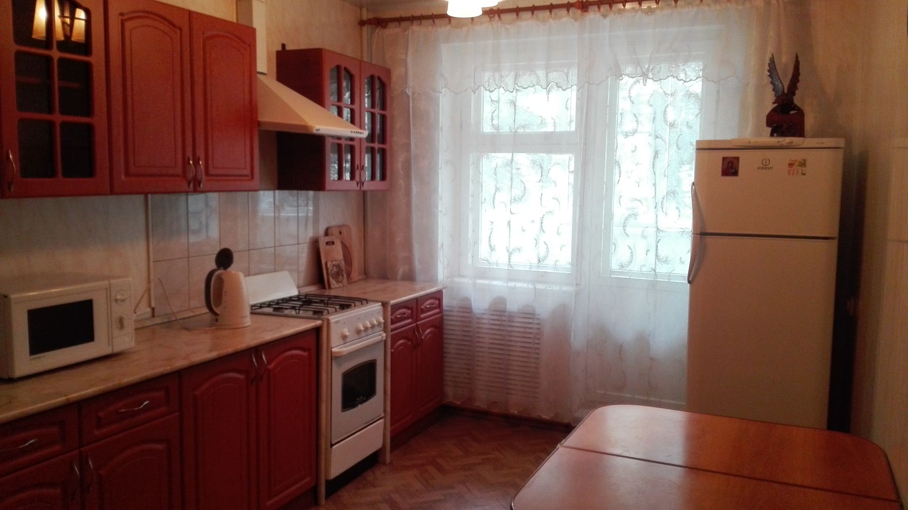 В квартире уютная домашняя обстановка, большая кухня, две лоджии.