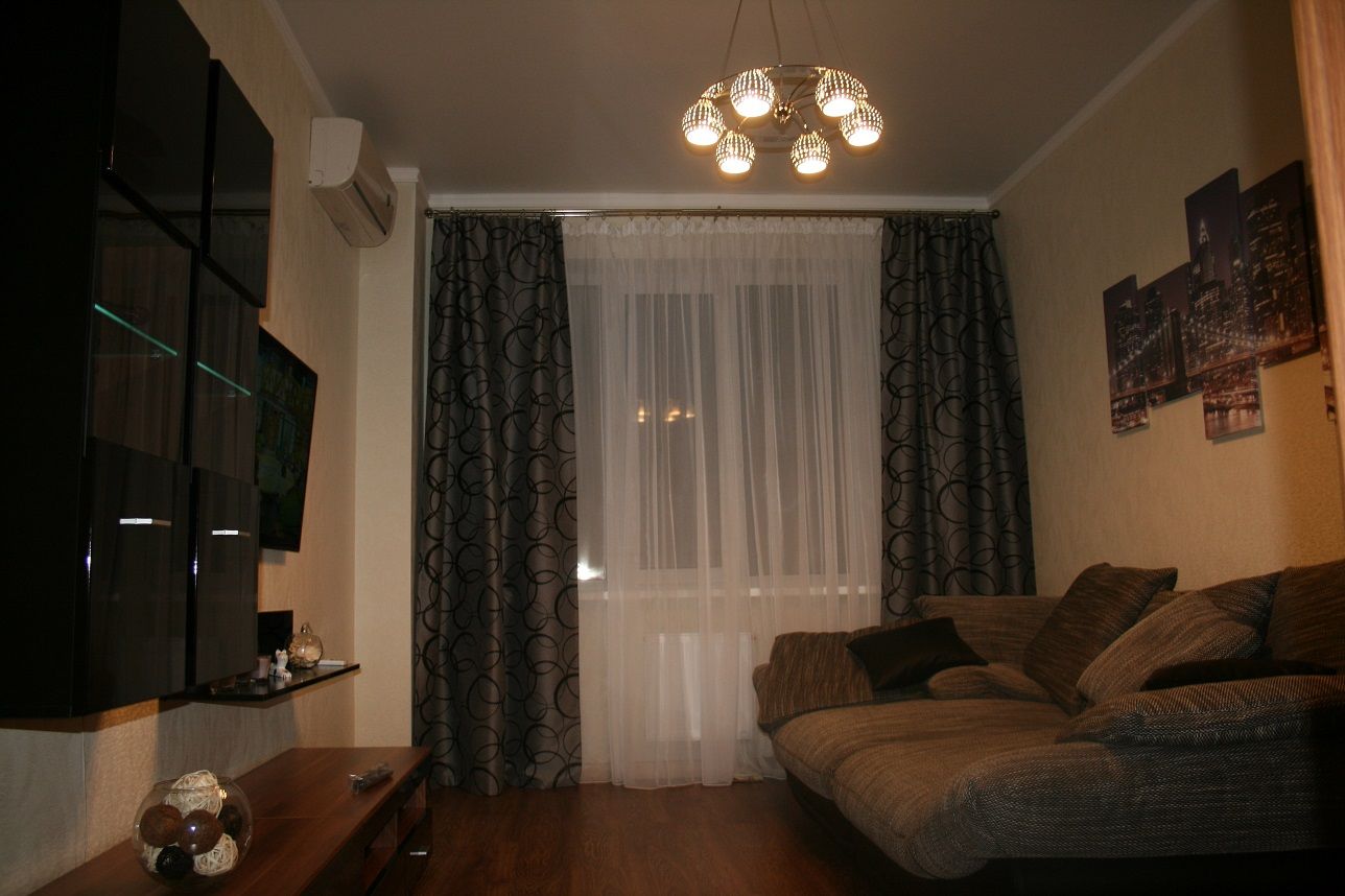 Квартира в новом доме. Дизайнерский евроремонт. В квартире есть все необходимое для комфортного проживания. Двуспальная кровать, прикроватные тумбочки, шкаф купе, огромный диван, кухонный гарнитур, кондиционеры в каждой комнате, ж/к телевизор в каждой комнате, есть гардеробная, лоджия застеклена, вся бытовая техника, чистое белье, посуда. Охраняемый паркинг.